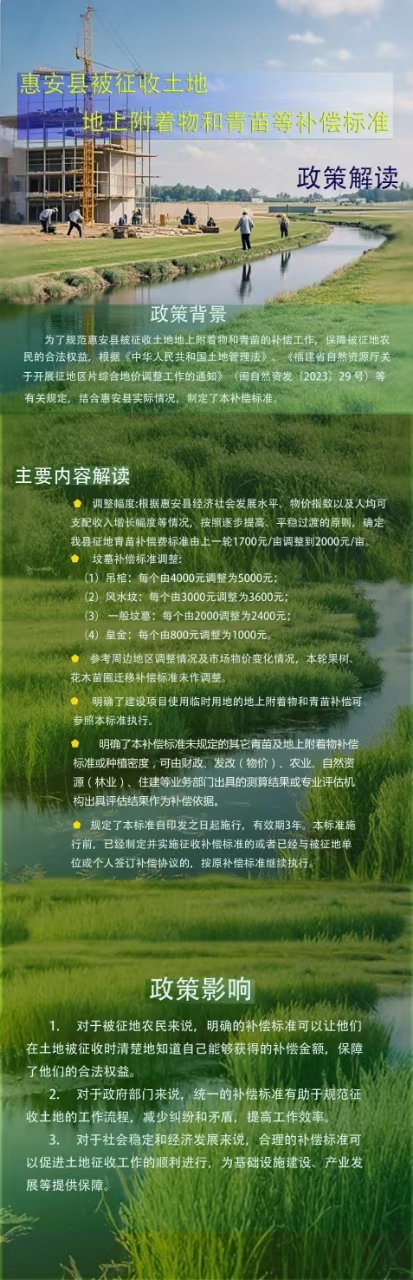 【一圖看懂】關(guān)于《惠安縣被征收土地地上附著物和青苗等補償標準》政策解讀