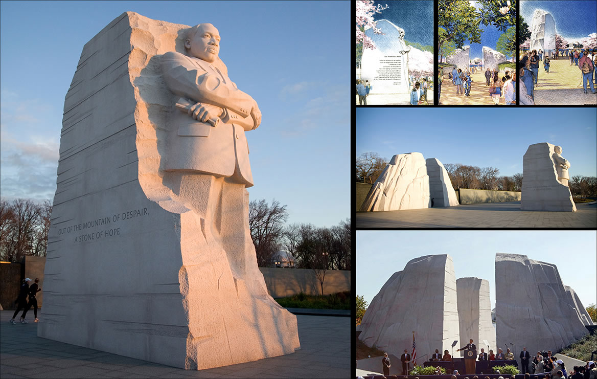 馬丁·路德·金紀(jì)念石像(Martin Luther King, Jr. Memorial)坐落于華盛頓特區(qū)的潮汐湖畔(Tidal Basin),在位置上與林肯紀(jì)念堂(Lincoln Memorial)和杰斐遜紀(jì)念堂(Tomas Jefferson Memorial)相得益彰。
