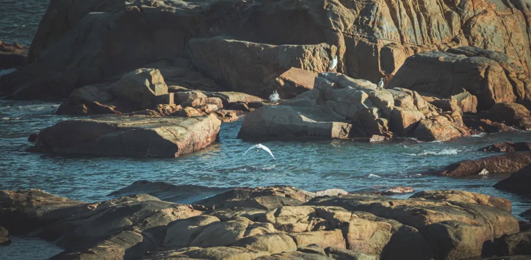 幾星歐鷺點(diǎn)綴在海面上
