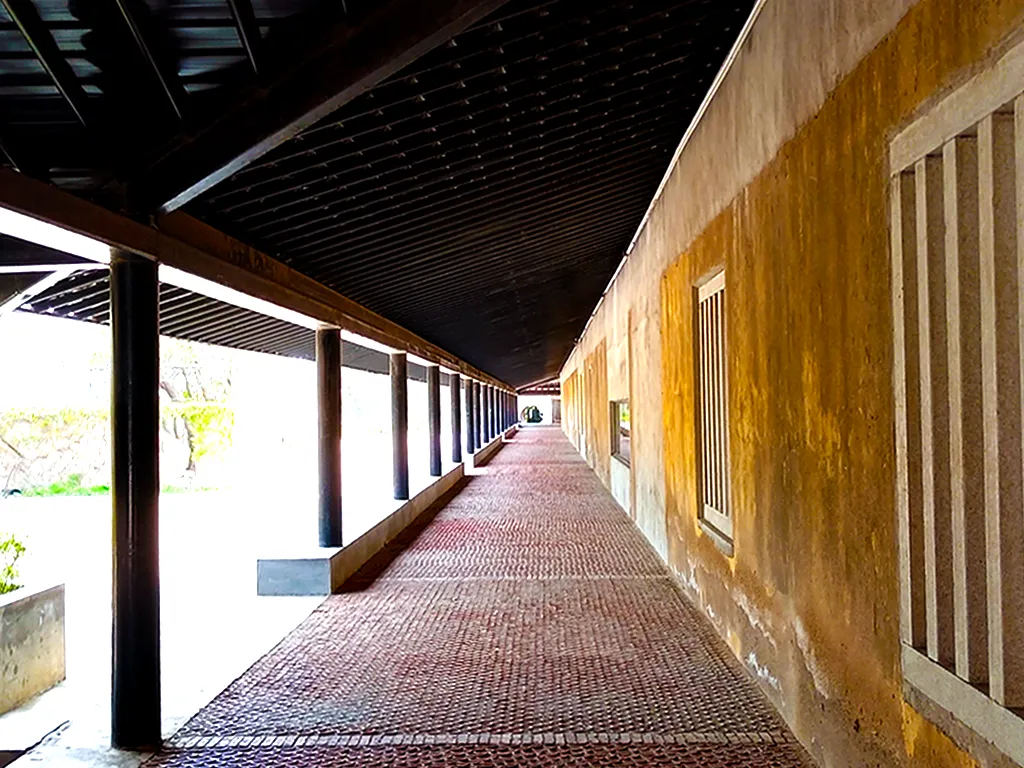 百米風(fēng)雨長廊縱貫?zāi)媳眻龅?,海洋元素巧妙地融入到了美術(shù)館設(shè)計(jì)中,清晨的陽光灑落在此,長廊就像海上泛起的微波,又像紅寶石般耀眼的魚鱗。