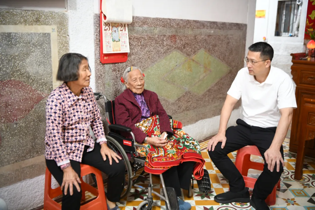 在盧盛老人家中,莊稼祥與老人并肩而坐,促膝長談,仔細詢問了老人的飲食起居、身體健康狀況和家庭情況??吹奖R盛老人雖然已有101歲的高齡,但仍然精神矍鑠、思路清晰,并且家庭和睦、生活幸福,莊稼祥非常高興,親手為老人送上了慰問金,希望老人的家人繼續(xù)傳承尊老敬老的好家風,盡心盡力照顧好老人的生活起居,讓老人樂享天倫、安享晚年。