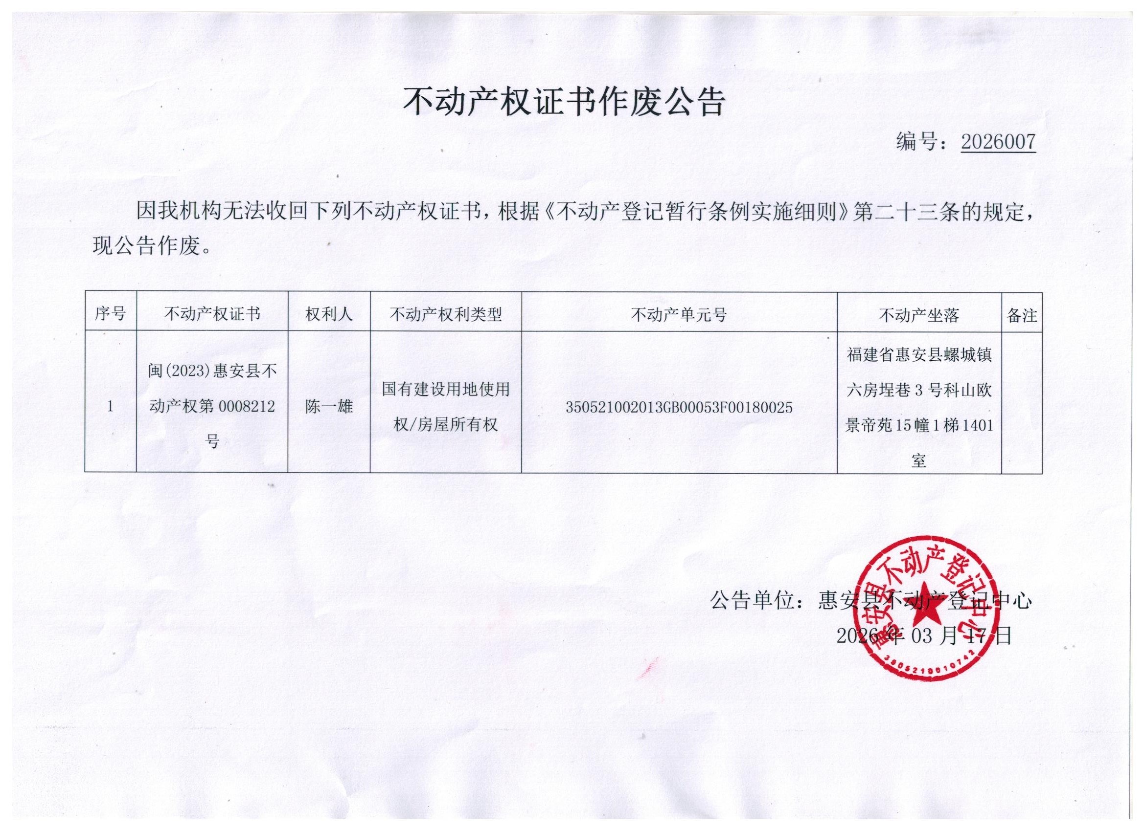不動(dòng)產(chǎn)權(quán)屬證書(shū)作廢公告